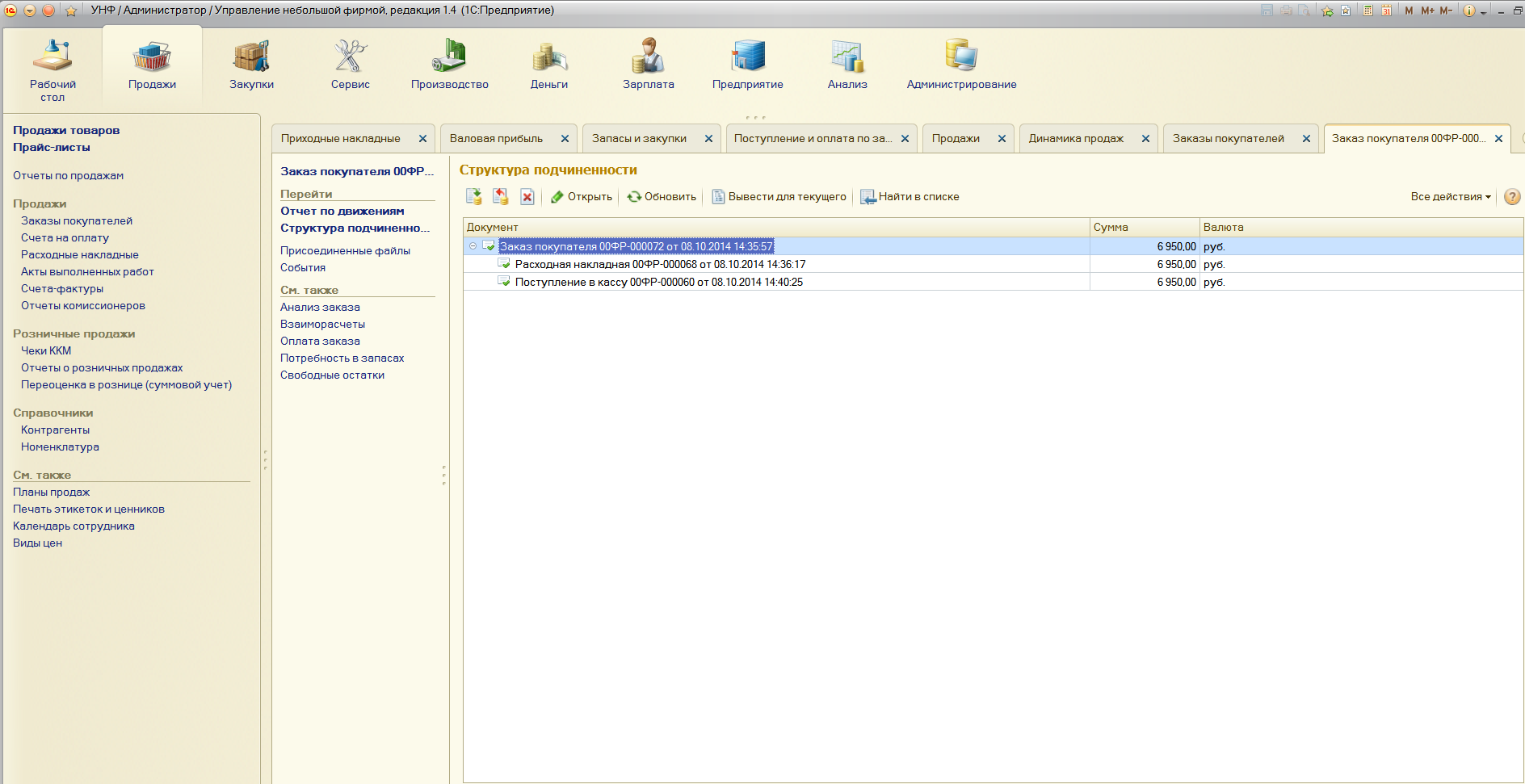 Сделаю в предположении, что это именно отчет, выводящий указанную информацию, а не форма "Структура подчиненности" с ее функциональностью, но по всем заказам.