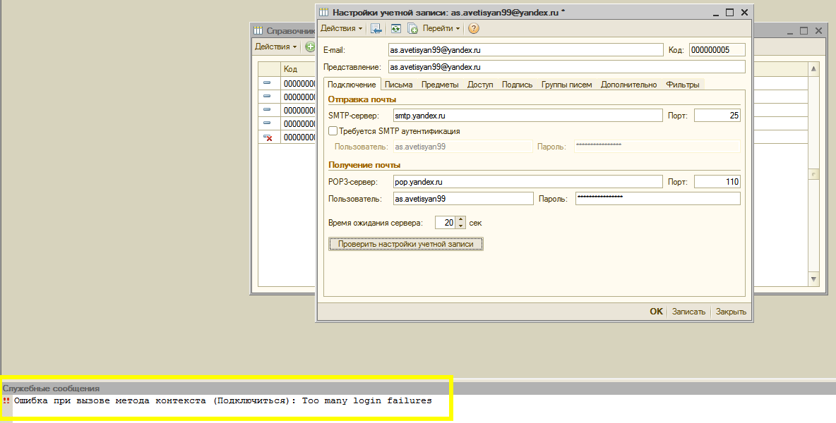 Ошибка при вызове метода контекста (Подключиться): Too many login failures