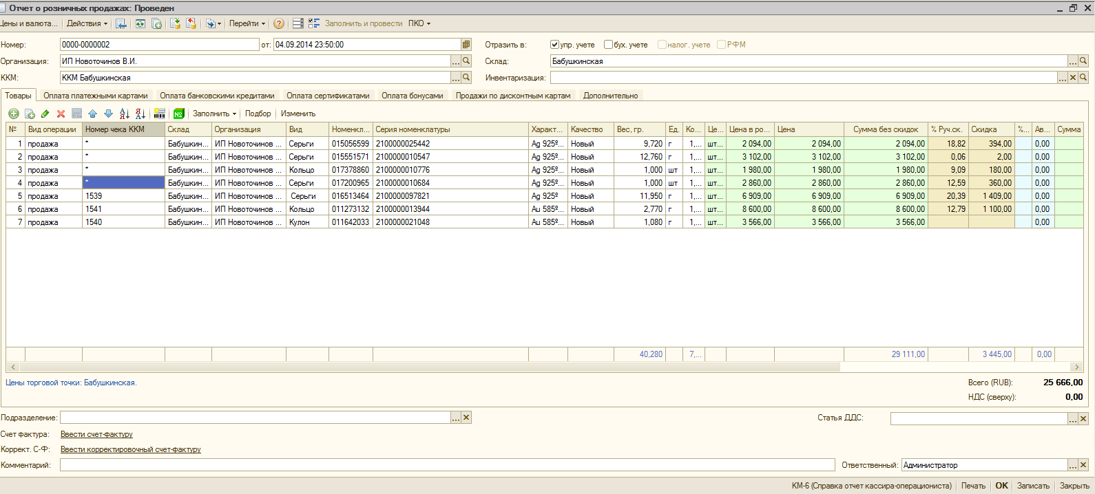 4.Изделия проданные в серую не отражались в бухучете для выгрузки в бухгалтерию