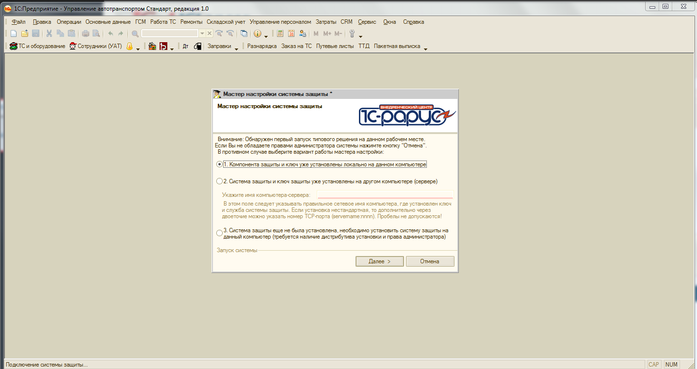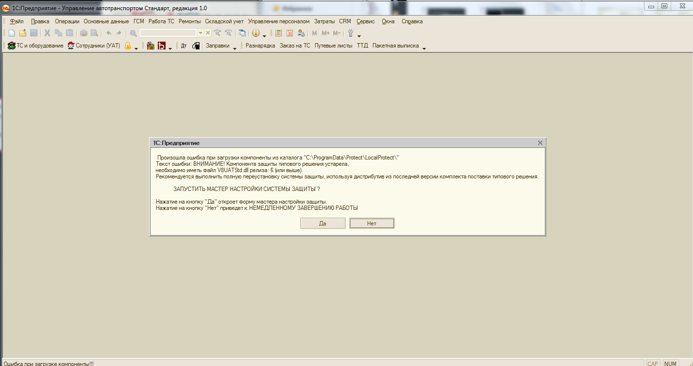 Убрать ошибку при запуске 1С рарус Управление автотранспортом , ключ имеется