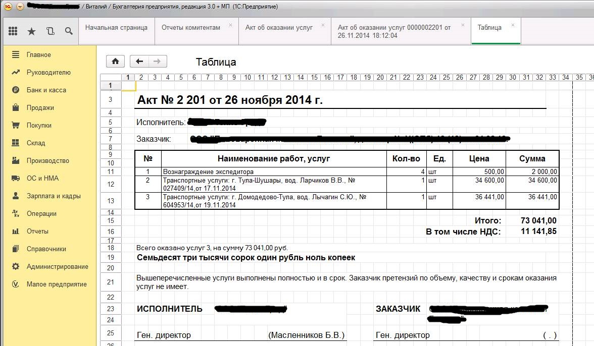 Это печатная форма акта (скрин).