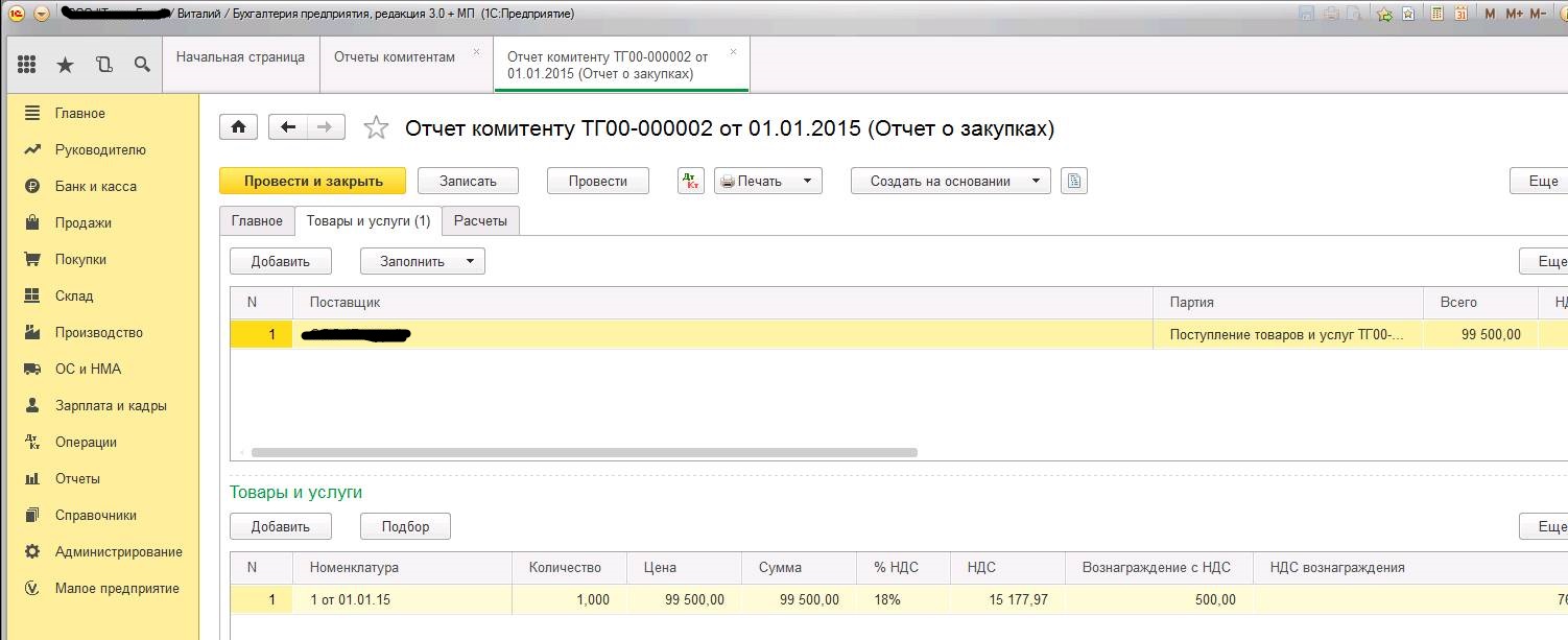 Мне нужно чтобы в этом обработчике была возможность выбора документов «отчеты комитентам» из меню покупки.
