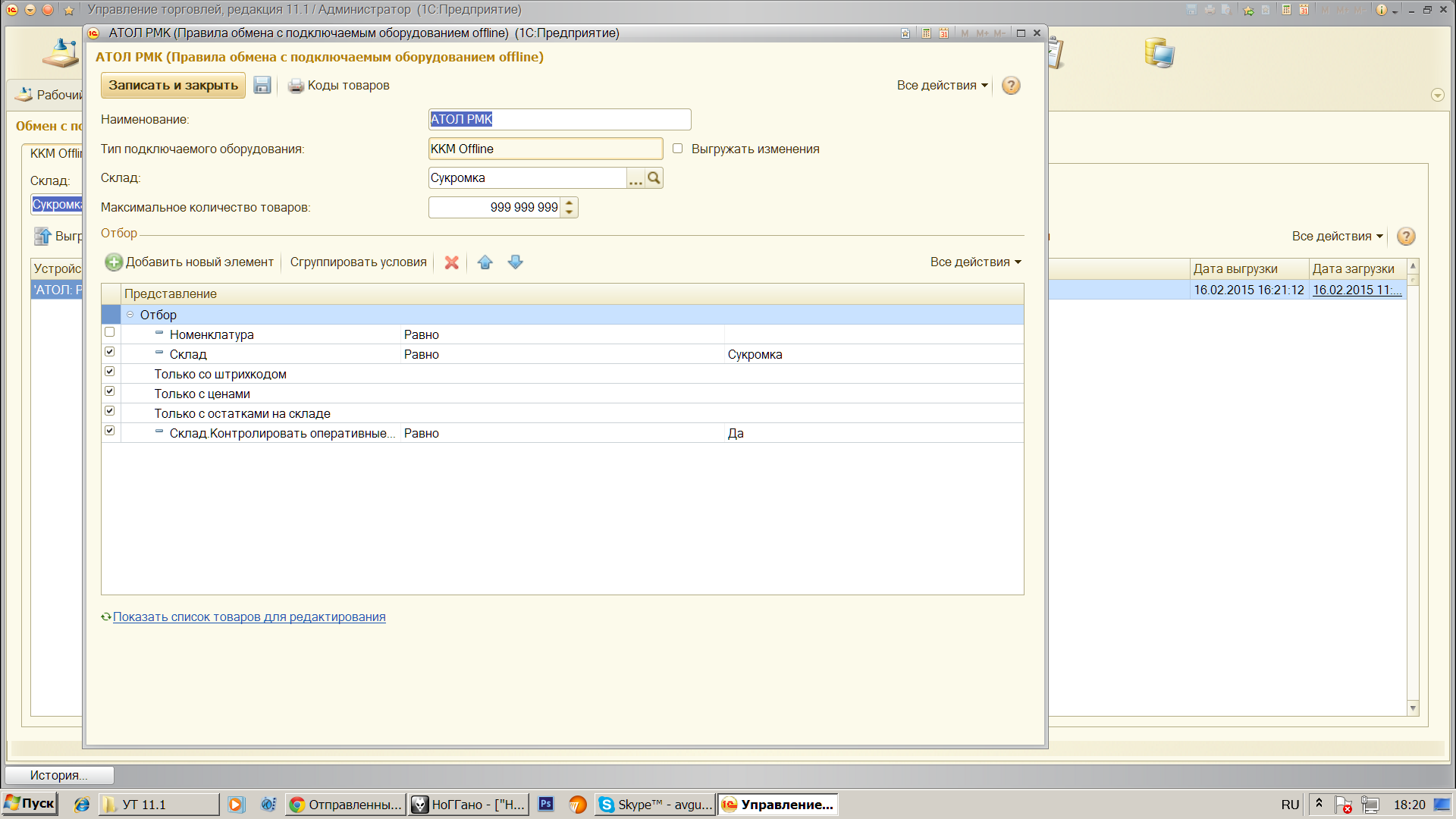 ут 11.1 обмен с атол 3.9.17 выгружает не измененные объекты а всю базу - очень долго