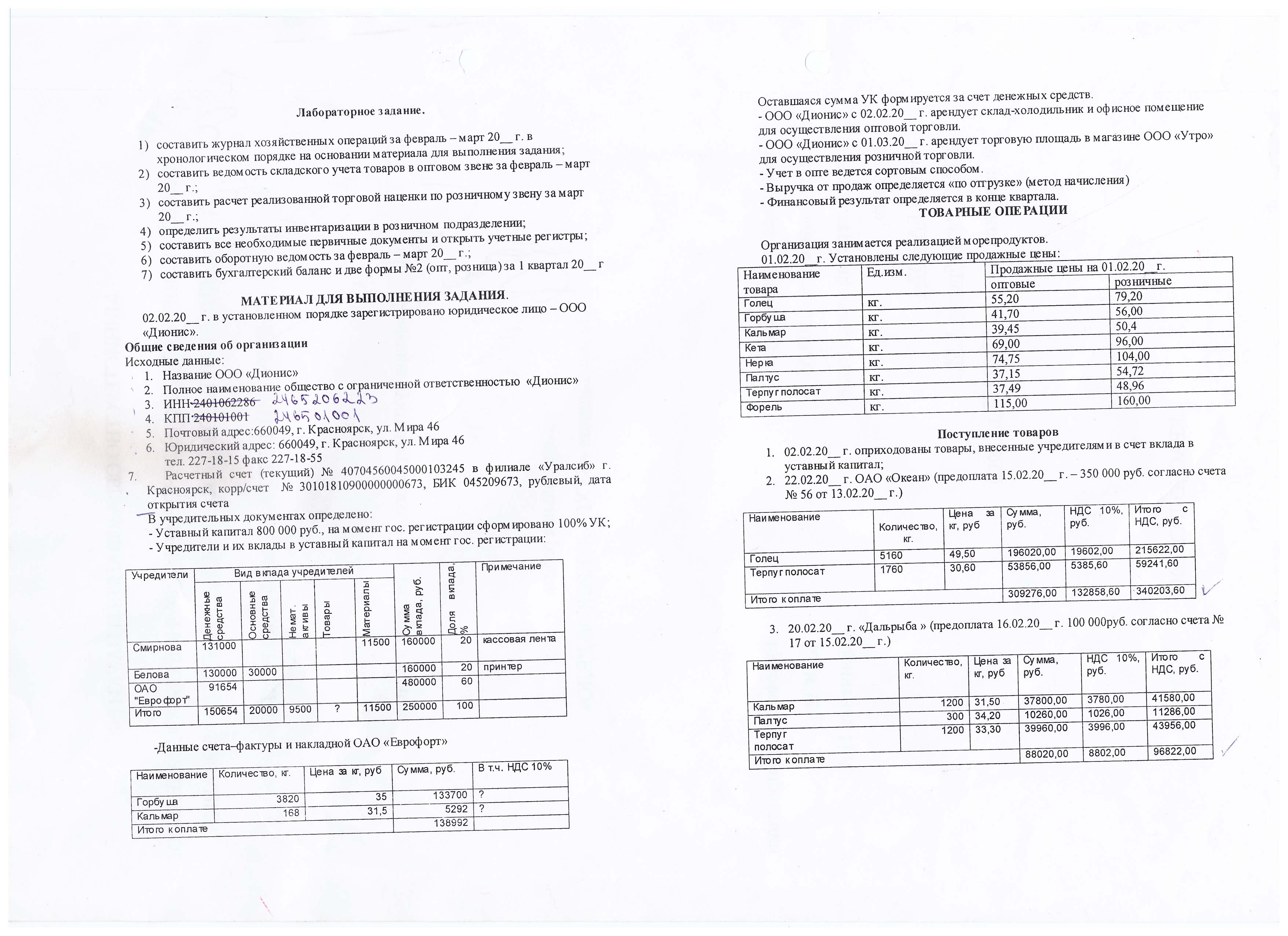 1) составить журнал хозяйственных операций за ферваль - март 20хх года в хронологическом порядке на основании материала для выполнения задания