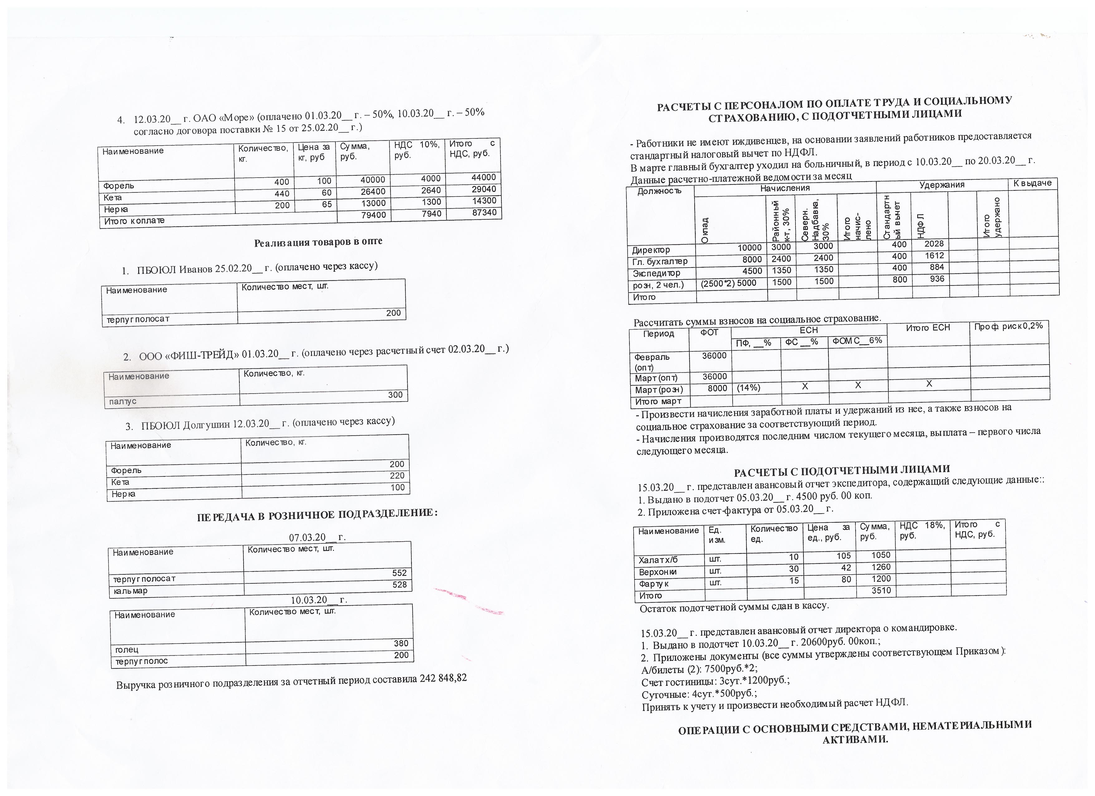7) составить бухгалтерский баланс и две формы №2 (опт, розница) за 1 квартал 20хх года