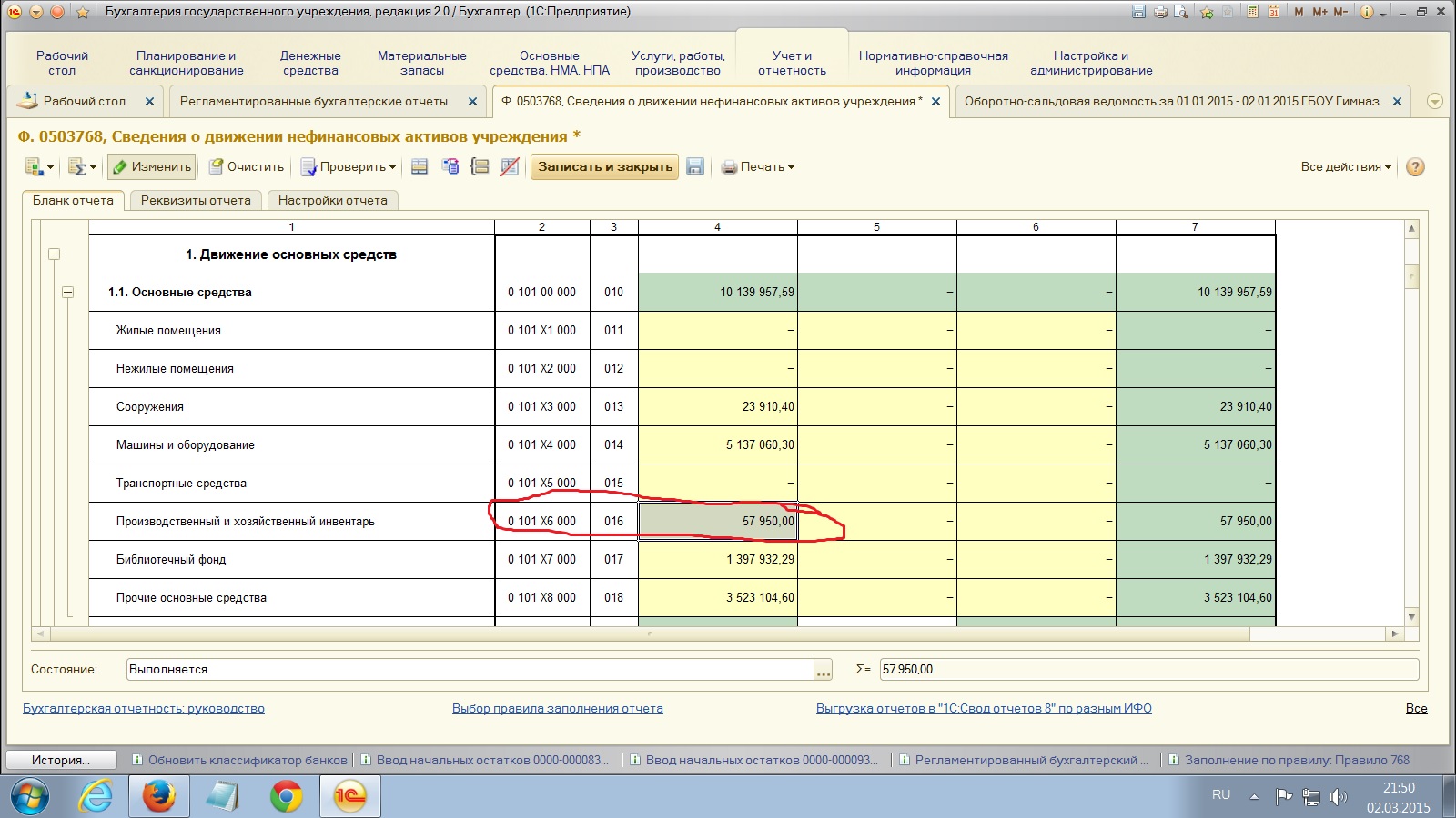 почему в регламентированном отчете ф. 768 по КФО 2 не садятся суммы по счету 101.36 (см. прилагающиеся скриншоты).