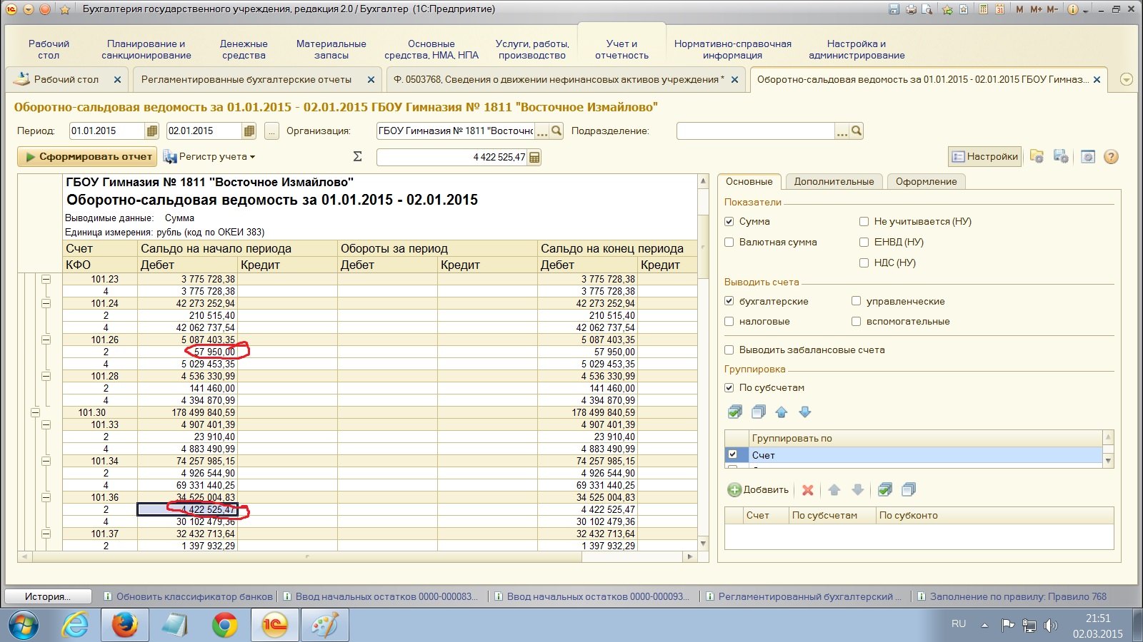 Разобраться почему не верно формирует отчет в БГУ 2.0