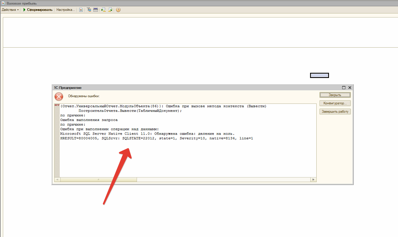 Поиск ошибки с выяснением источника ее возникновения по нормативам до 1 часа. Если как у Вас синтаксическая в отчете Валовая прибыль, то естессвенно заплатка. Поиск по удаленке на Вашей базе. Очевидно, судя по скриншоту где-то попались некорректные данные для расчета, раз "деление на ноль" нужно такое предусмотреть.