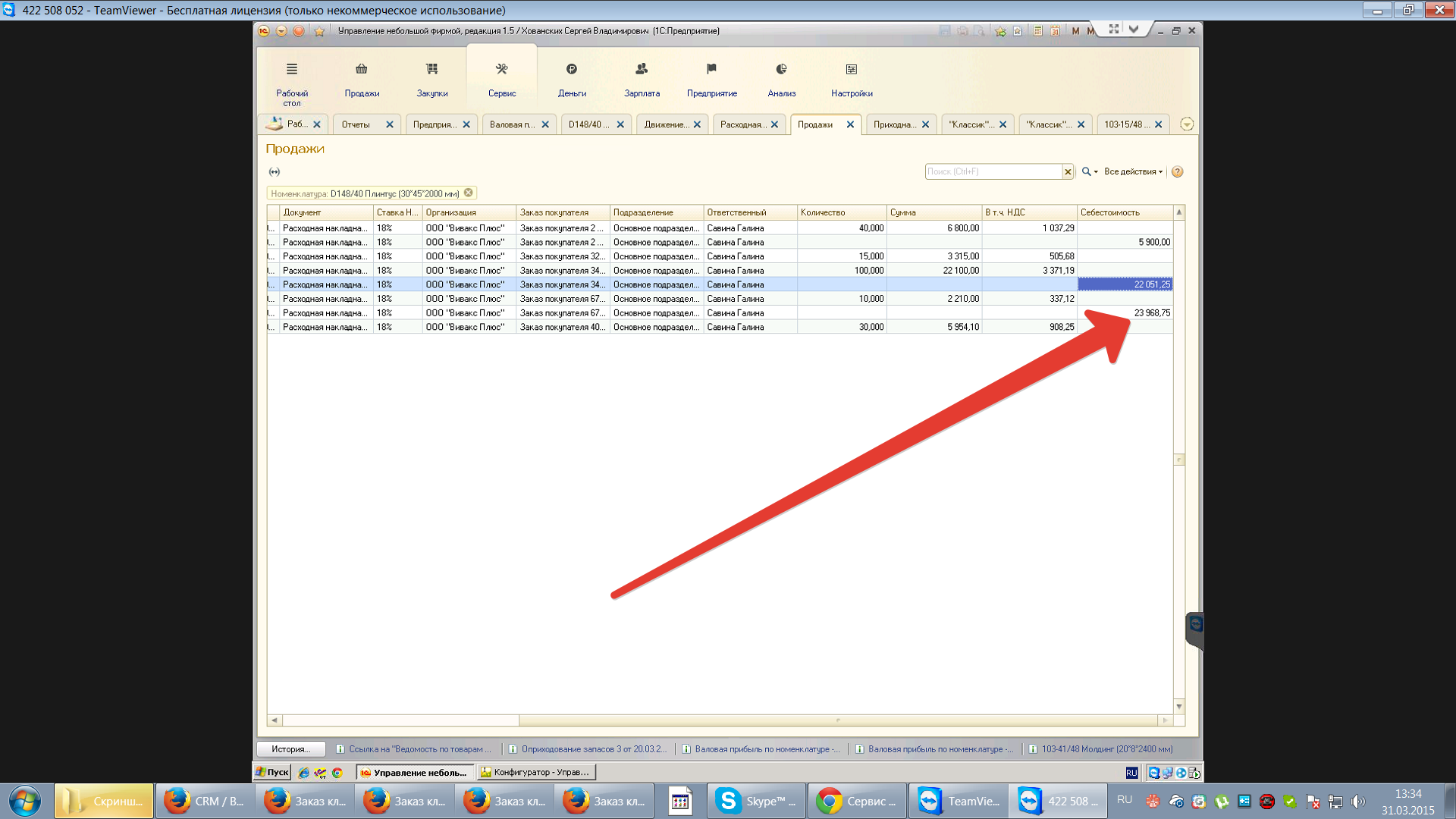 Выдает отрицательные показатели рентабельности и себестоимости, себестоимость считается накопительно, так не нужно,нужно исправить что бы считала каждый документ в отдельности.