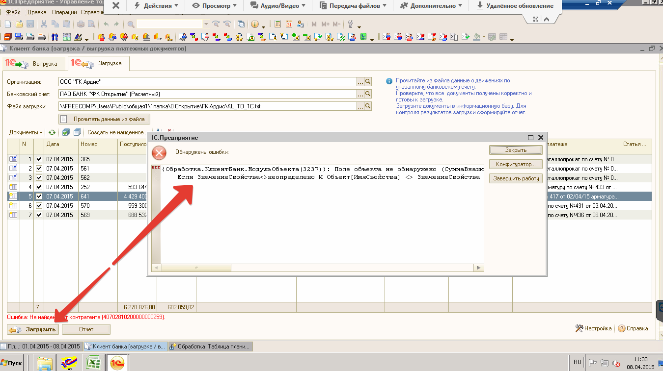 Ошибка при загрузке из клиент-банка в УТ10.3