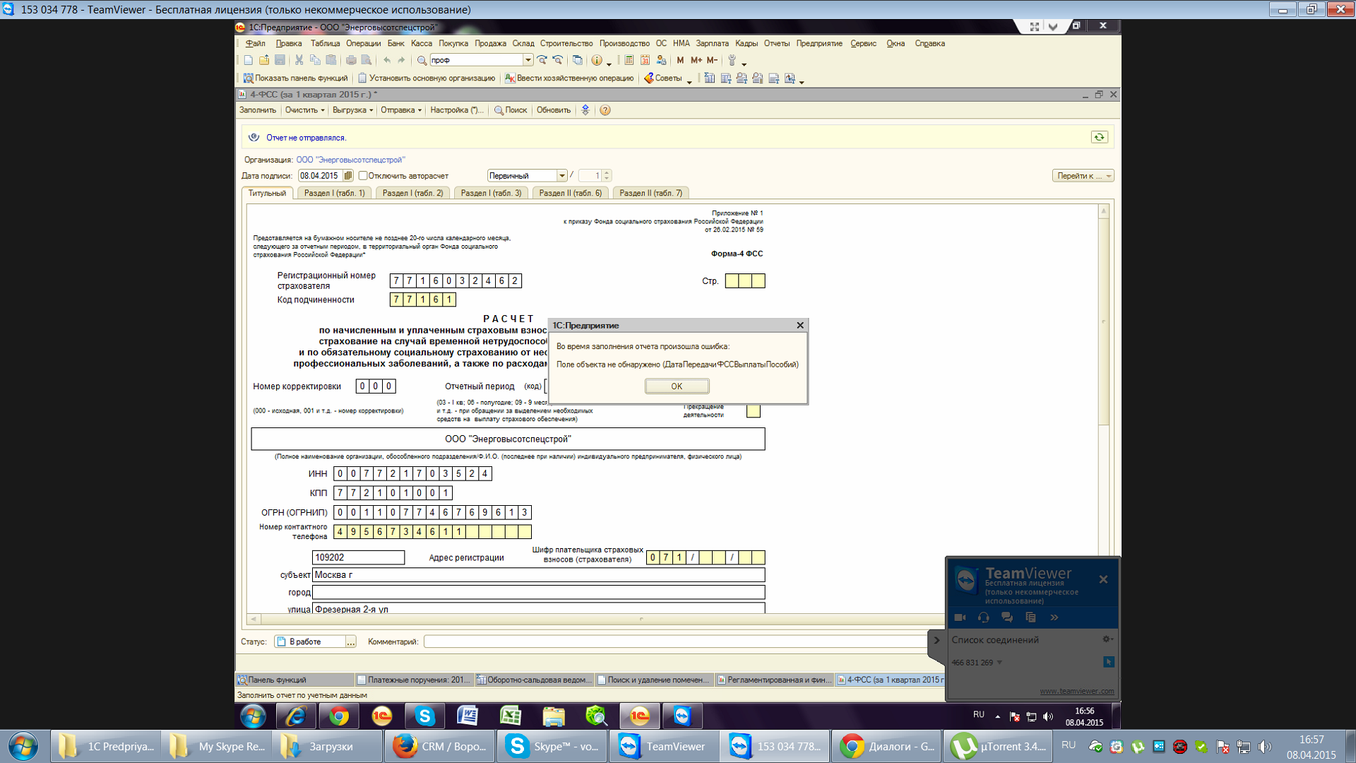 Исправить ошибку в отчете ФСС за 2015 г