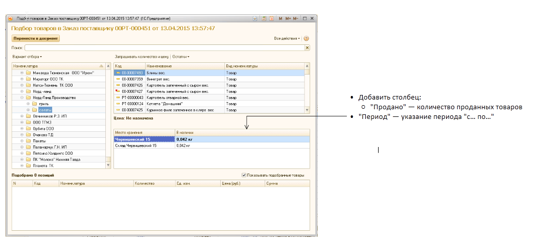 Доработать форму подбора в "Заказе поставщику" УТ11