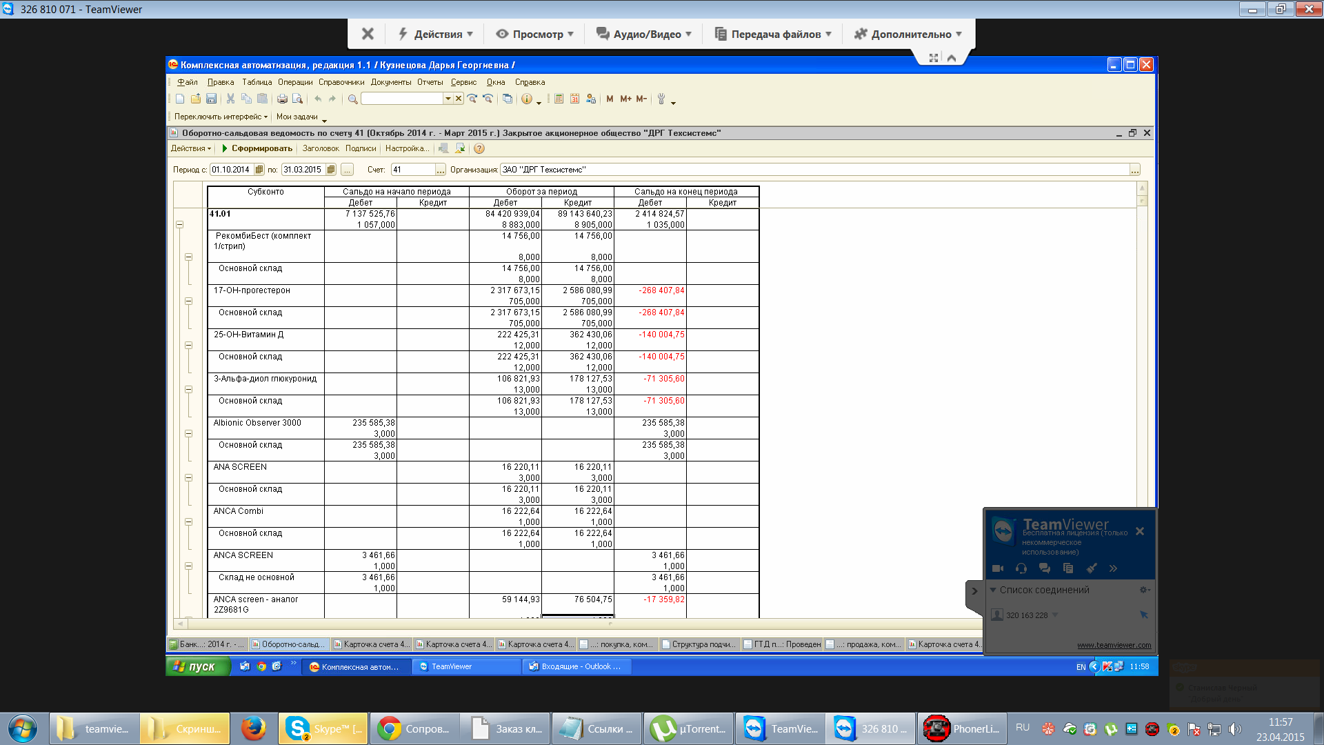 КА отрицательные остатки по 41