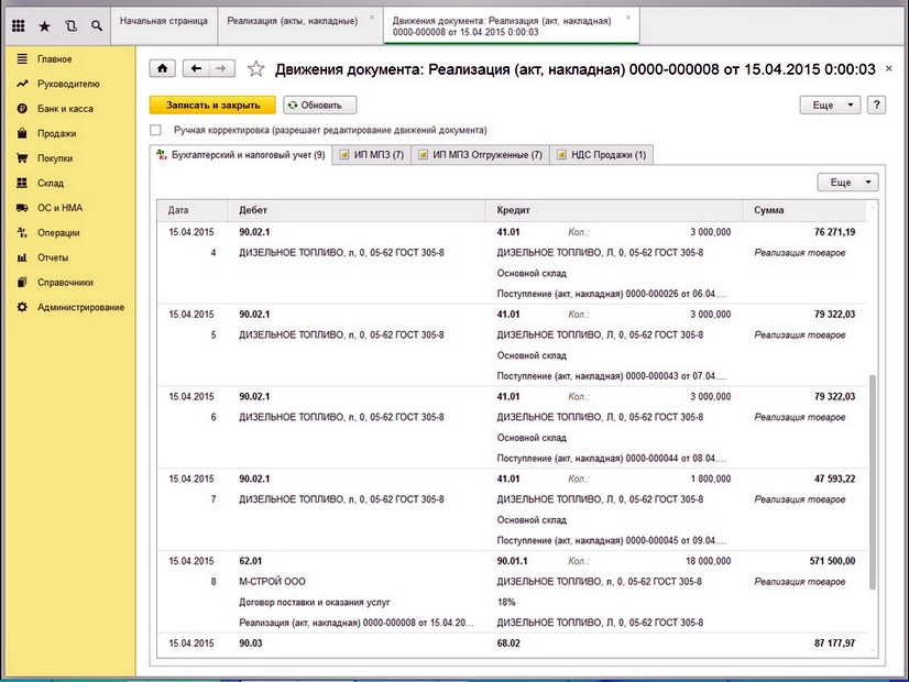 При продаже товара, посмотрел, там проводок, как портянка, для чего-то не одной суммой и НДС, а много маленьких сумм (в покупках видел эти суммы). В Книгу попадают не все продажи. Как-то (и зачем-то) мои продажи увязываются с приобретением, складами, учётами номенклатуры и прочим. Для ИП на ОСН это всё не надо. Нам надо весь доход от продажи, и весь расход на закупку товаров для продажи. Только это имеет значение для 1% в ПФР и 13% НДФЛ. Всё остальное для бухгалтерского учёта, который ИП могут вовсе не вести.