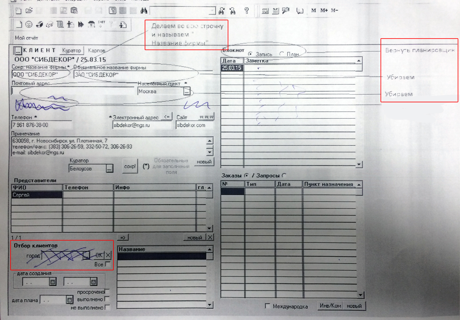 2) Карточка клиента, сделать изменения (файл 5002).