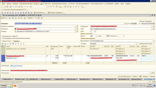В документе акт об оказании услуг на сумму 17,66 зачтён аванс на сумму 52,98 (в проводках отображается) хотя в документе везде сумма 17,66 и при проведении выходит сообщение что зачтен аванс на сумму 17,66.