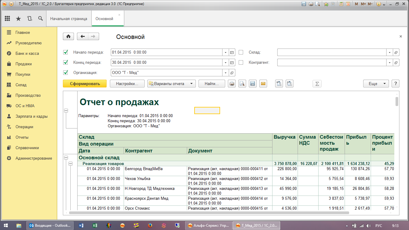 Внешний отчет по прибыли от продаж номенклатуры для Бухгалтерии 3.0