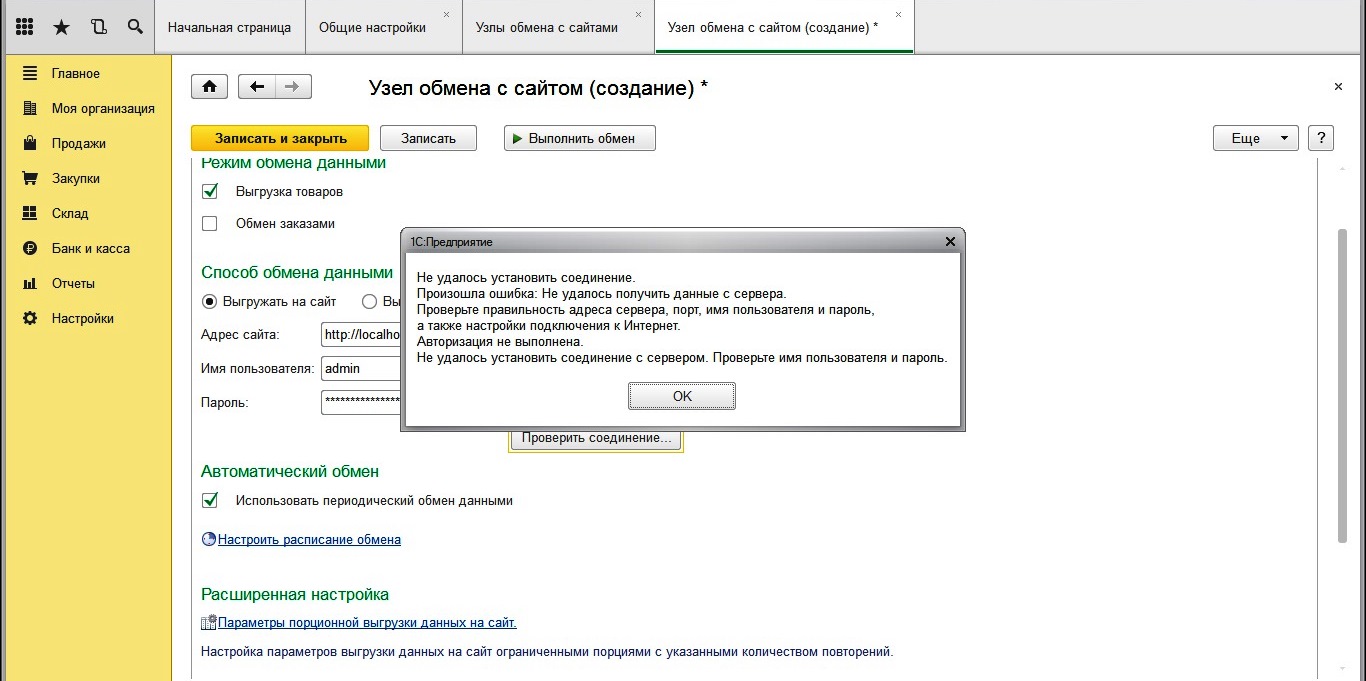 При попытке соединиться с базой в настройках 1С выдает вот такую ошибку (картинка)
