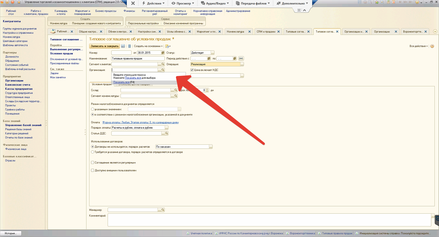 УТ11 - не можем заполнить типовое соглашение об условия продаж