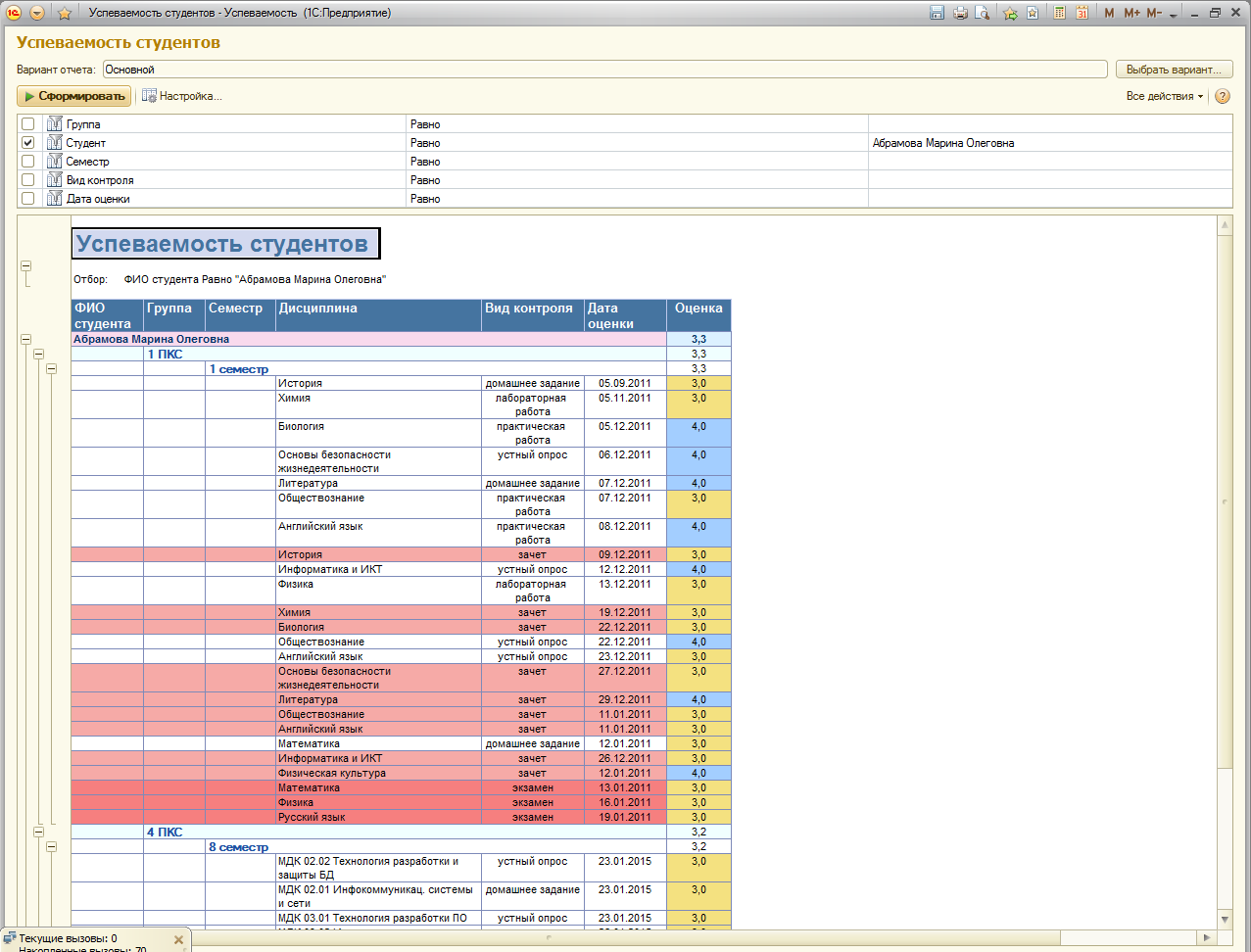 Срочно требуется доработка отчета "Успеваемость студентов" на СКД или его...