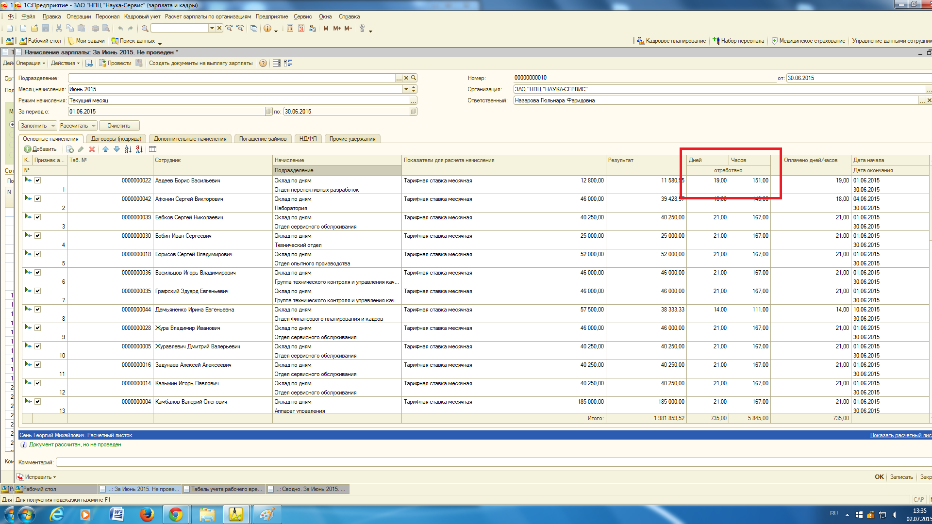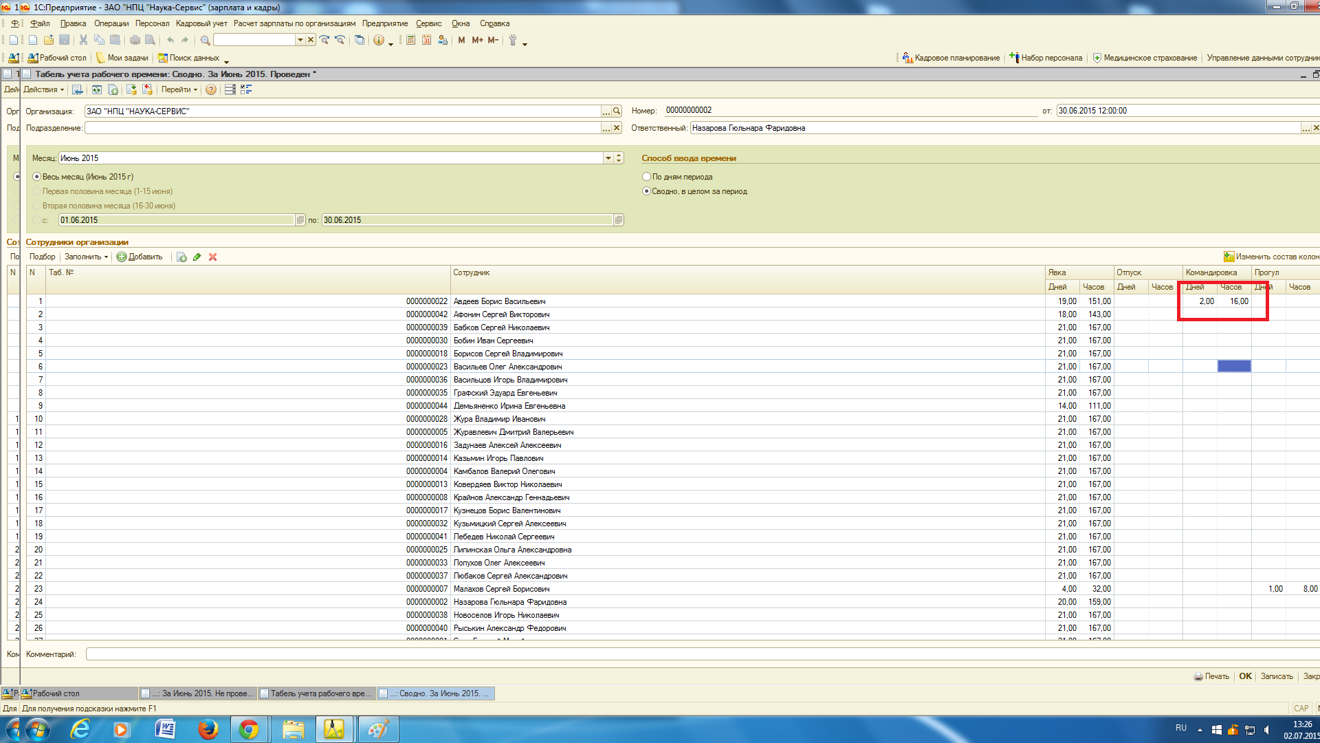 Требуется чтобы ЗП начислялась как за вид времени "Явка", так и за вид времени "Командировка"