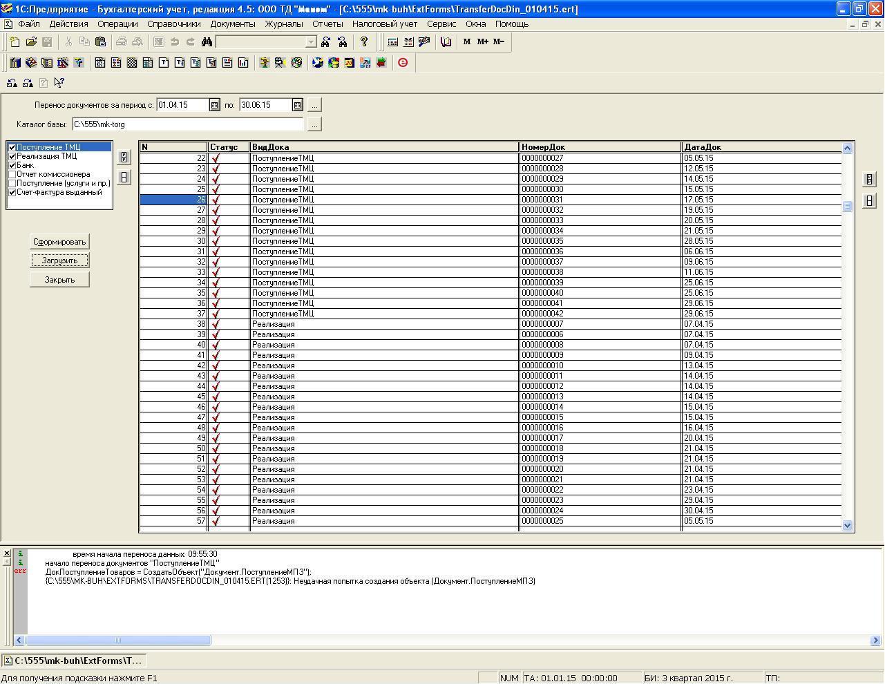 Проблема выгрузки документов из торговли 7.7 в бухгалтерию.