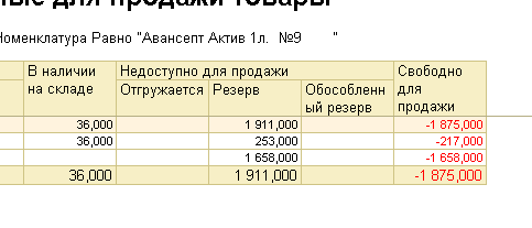 После обновления УТ на 11.1.9.44 появились минусы на доступных к продаже остатках