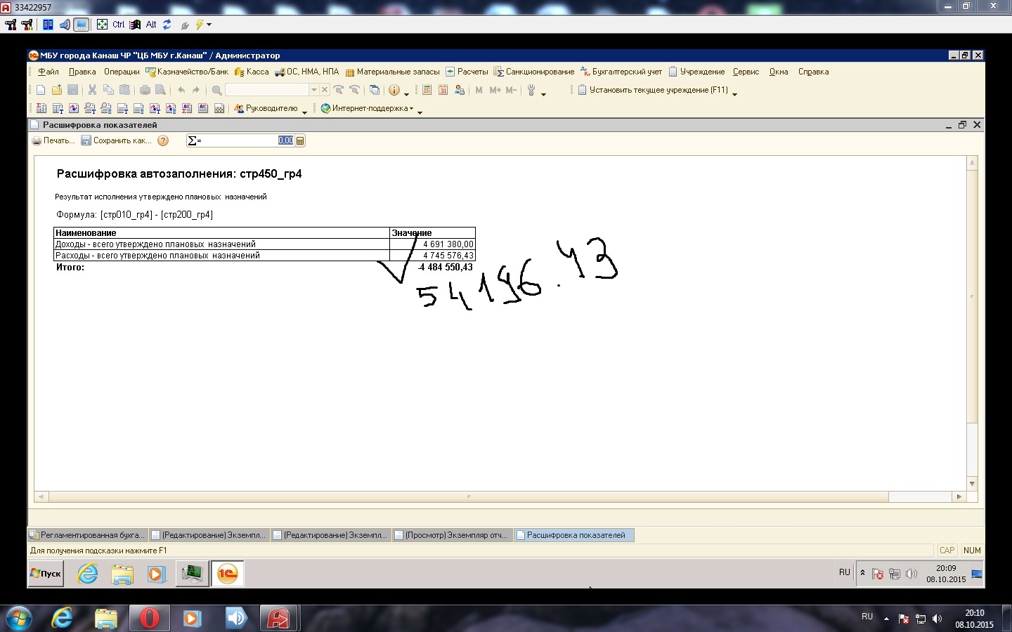 Пока обнаружили в ф. 0503737, см. скрины, в расшифровке есть цифры, расчеты, но в форме суммы выводятся неправильно. Нужно до завтра, макс. до 12.00, согласен за срочность исправления доплатить.