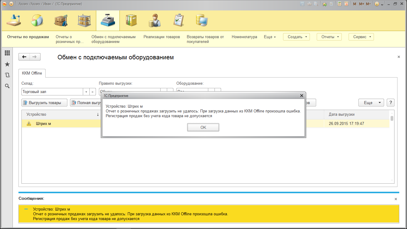 2. Исправить ошибку указанную на фото. Что бы 1с не ругался на свободную продажу.