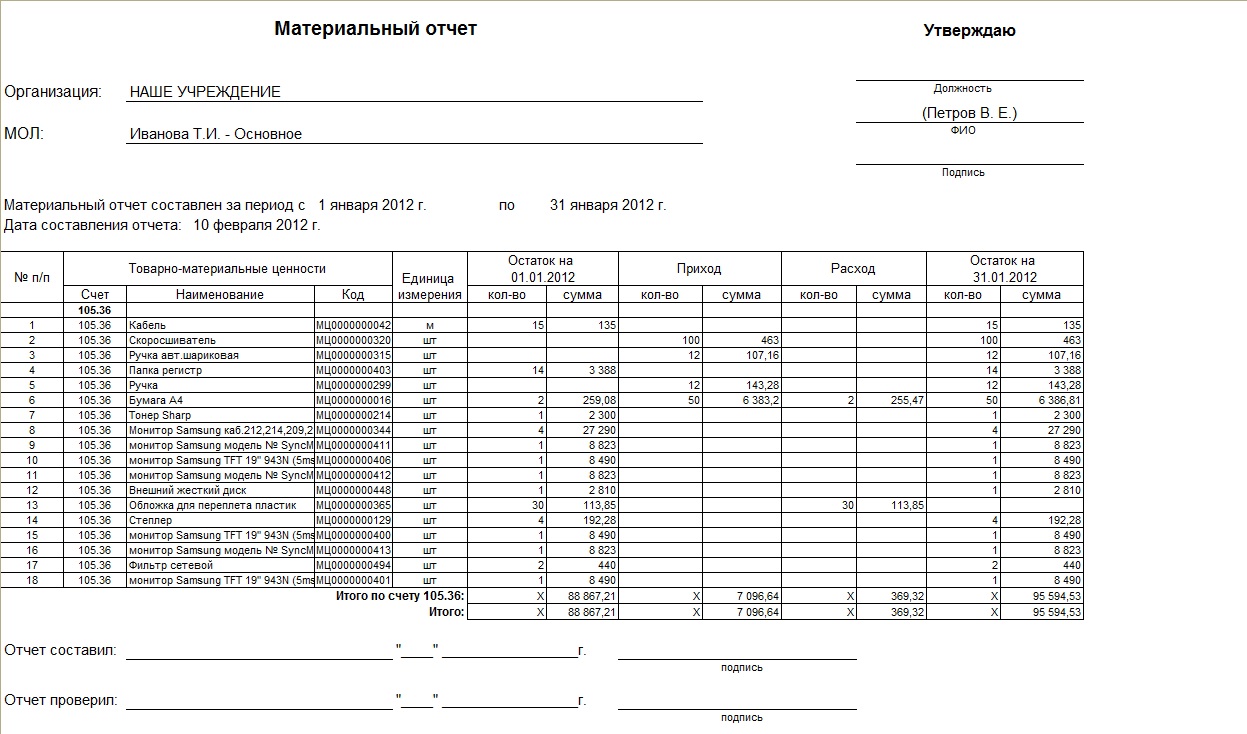 Нужен материальный отчет для 1С БГУ 8, редакция 1