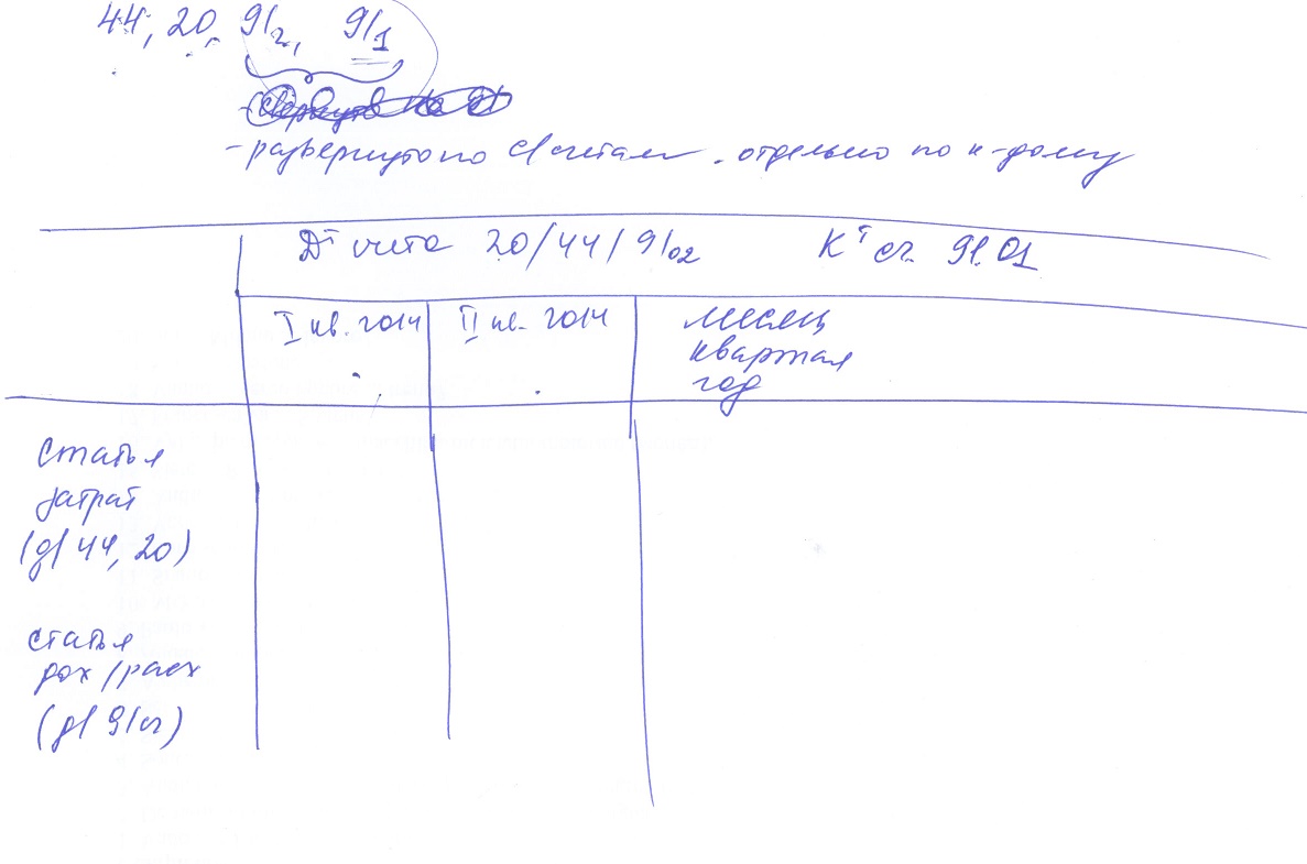а по вертикали чтобы шли статьи затрат(для счетов 44 и 20) и статьи доходов и расходов (для счета 91).