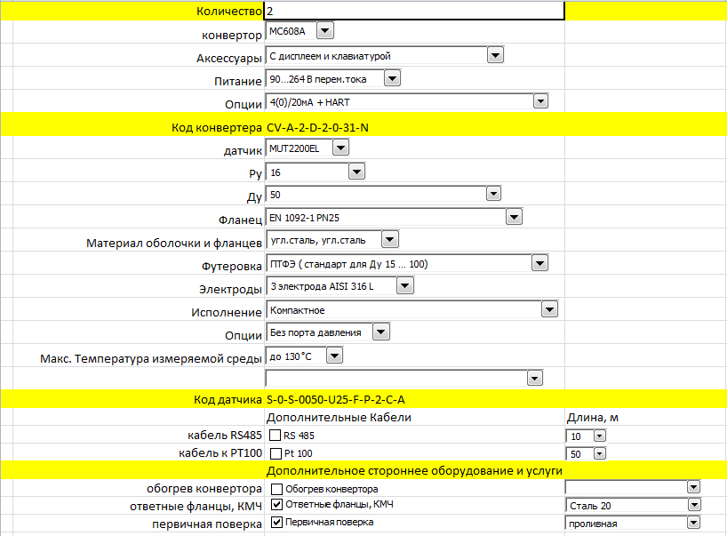 Для примера приложен внешний вид конфигуратора электромагнитных расходомеров, сделанный в Excel.
