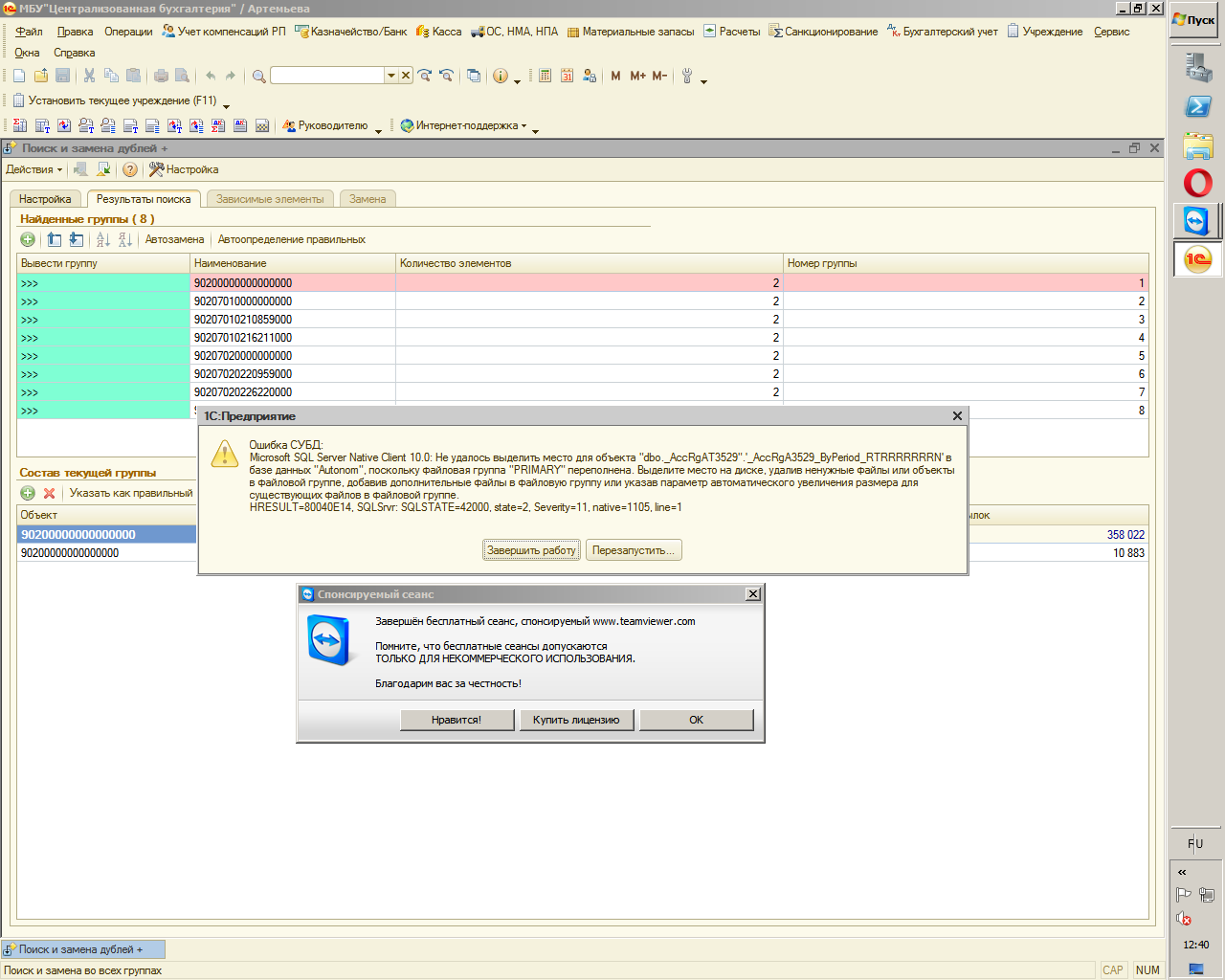 Исправить ошибку SQL-базы (в 1С вылезает ошибка)