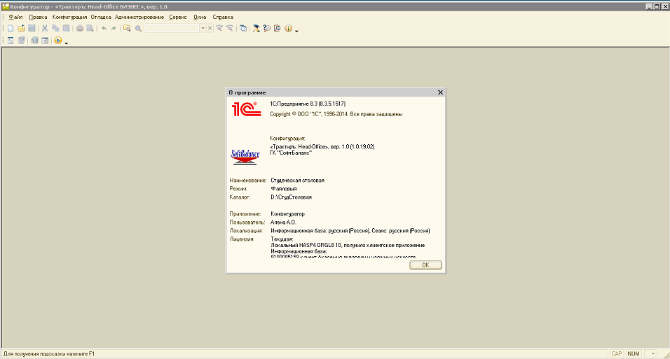 Требуется провести обучение сотрудников в офисе компании по конфигурации 1С:Трактиръ Head-office, версия 1.0(1.0.19.02)