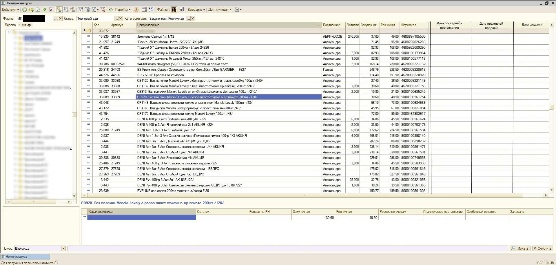 Дополнить форму номенклатуры
