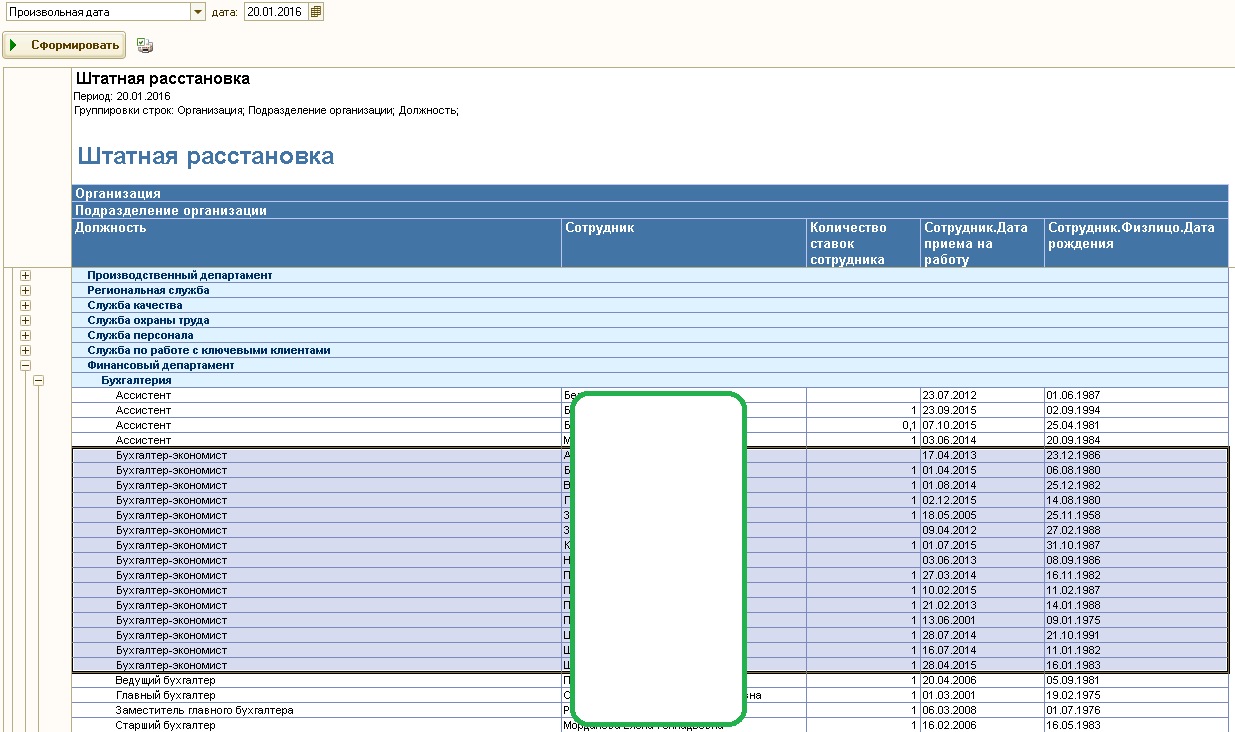 Новый Отчет Штатная расстановка по сотрудникам для ЗУП 3.0.24.148