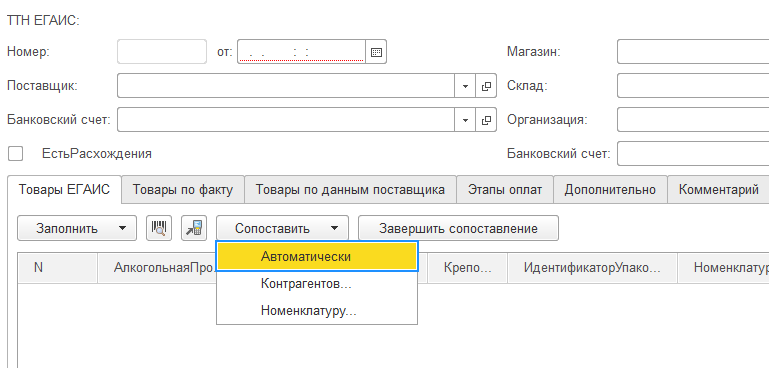 Это необходимо для ускорения первоначального заполнения пустой базы - чтобы не приходилось в пустой базе для приходования накладных из ЕГАИС многократно на каждой строке каждой накладной нажимать "Сопоставить Контрагентов, Номенклатуру...".