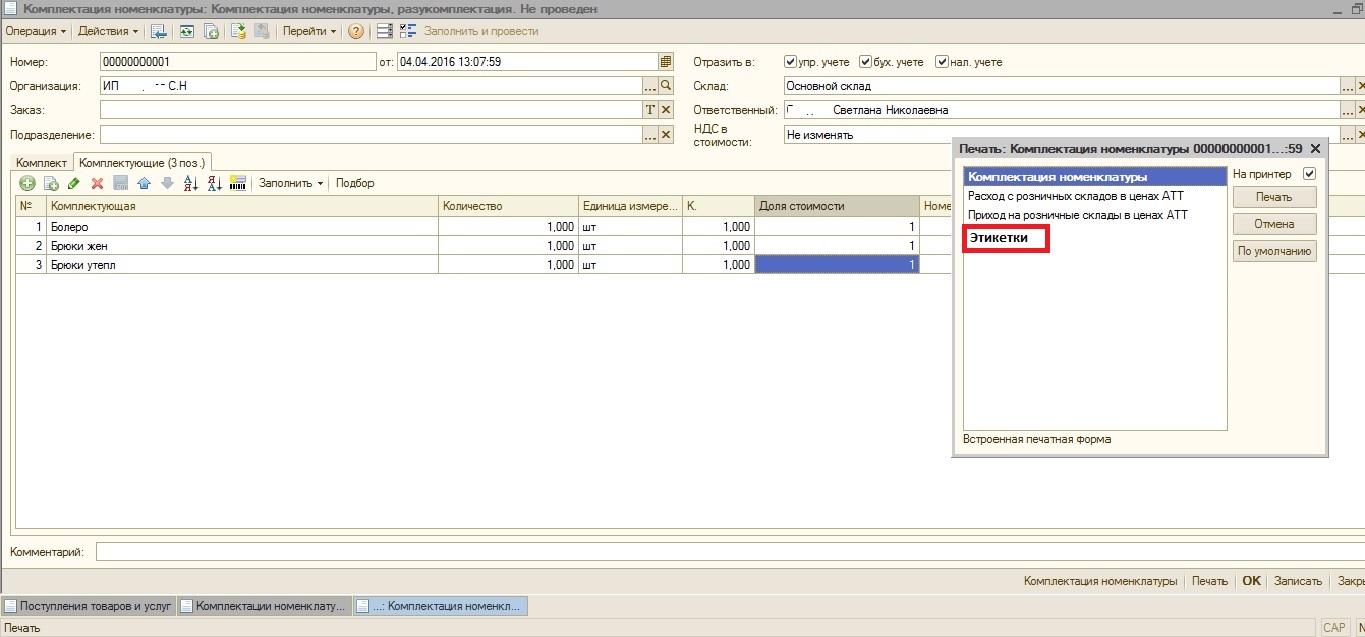 Привет! Требуется в УТ 10.3.32.2, платформа 8.3.5.1517 добавить возможность печатать этикетки из формы элемента "Комплектация номенклатуры" (как это реализовано из ПТиУ)