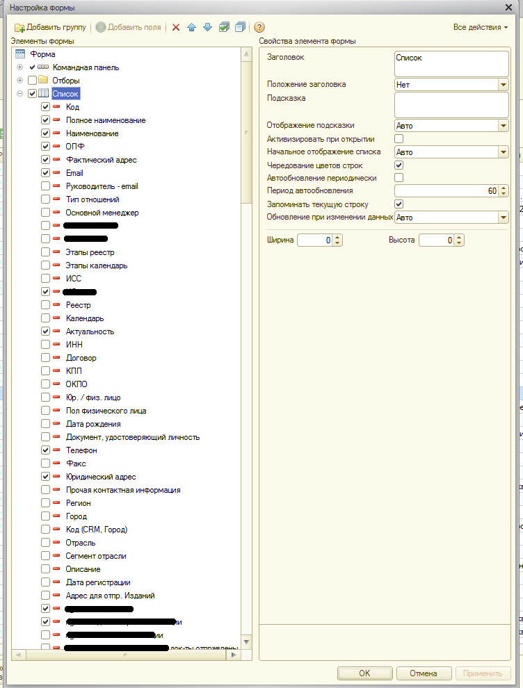 1С CRM СТАНДАРТ. Добавить созданные поля в форму списка