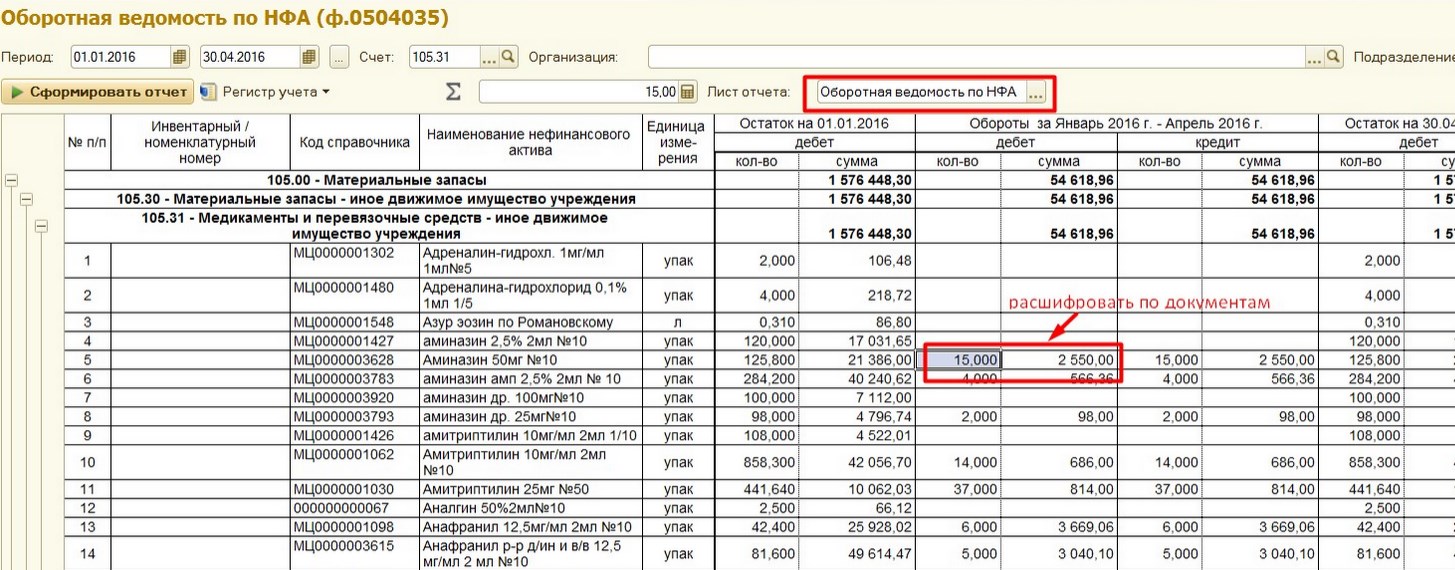 надо в БГУ на основание отчета оборотная ведомость по НФА ф. 0504035