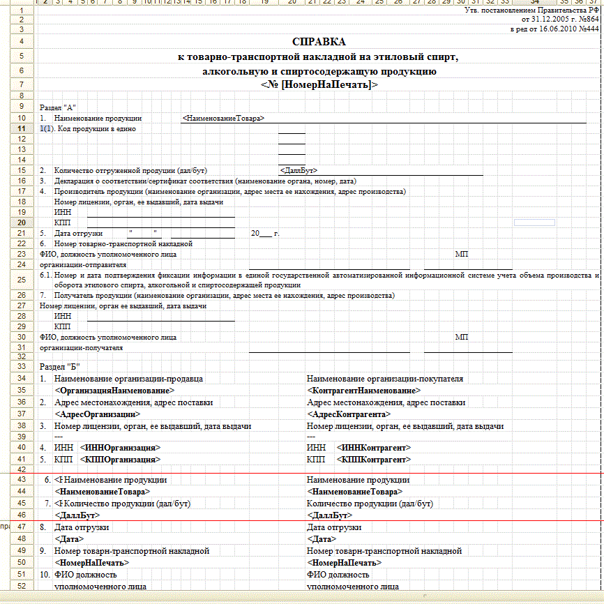Требуется создать печатную форму справки к ТТН на этиловый спирт, алкогольную и спиртосодержащую продукцию. Справка А есть в готовом виде, но старой редакии, можно будет её переделать.