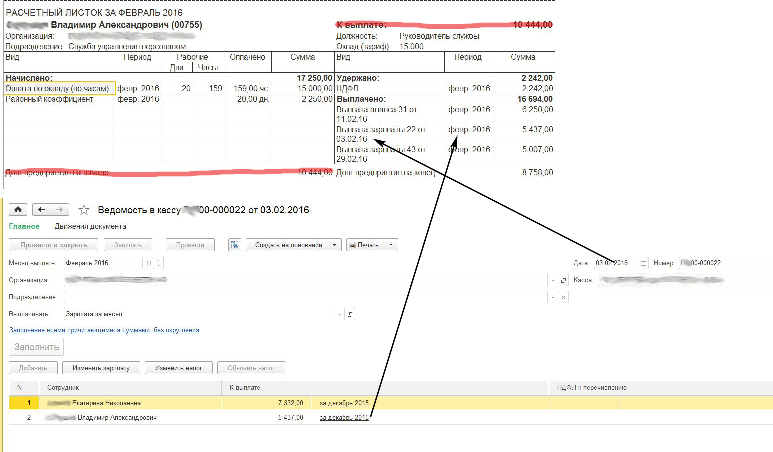 2. В графе выплаты должны быть данные по дате документа (документ с датой в марте должен попадать в мартовский листок), а период выплаты тот, за который идет выплата. (Например, выплата зарплаты за февраль с датой документа 15.03 должны попадать в мартовский листок)