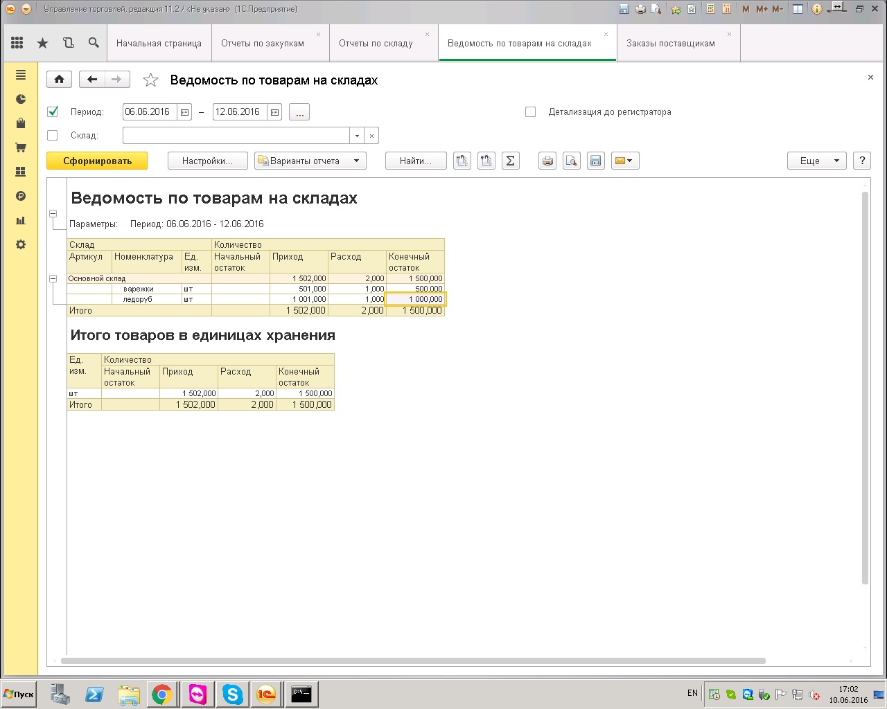 В отчет Ведомость по товарам на складах нужно добавить Товары в пути - которые берутся из заказов поставщика с текущим состоянием Ожидается поступление