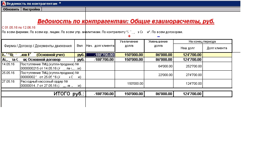 6. Повторив действия с 1 по 4 получить отчет для другого контрагента