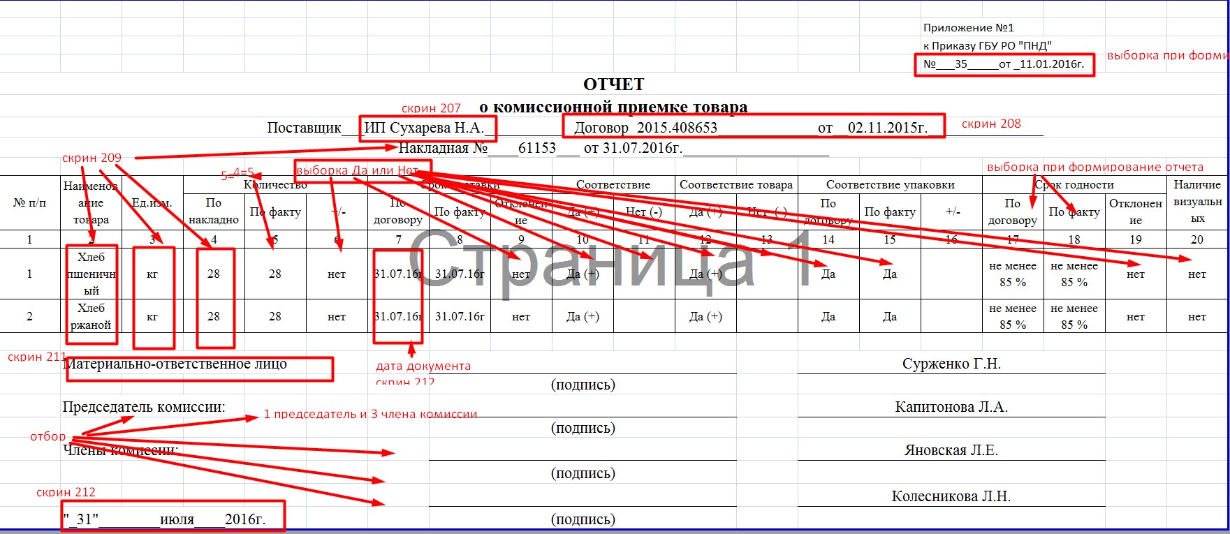 создать отчет на основании документа Поступление МЗ для БГУ 2 создать отчет о комиссионной приемке товара, согласно скрина 213