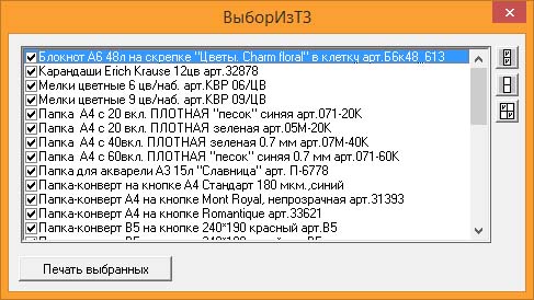 При выборе печатной формы появляется список всех товаров для которых будут сформированы ценники. В этой форме можно отметить все, либо отдельные товары для которых необходимы ценники.