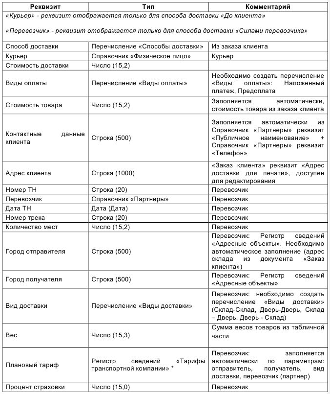 Делал подобное для транспортной компании. А печатную форму никакую не нужно? Отчет по доставке? Сделаю в рамках указанного бюджета тоже. С меня - тех.поддержка. Т.е., если вдруг будут в процессе работы найдены ошибки, устраняю бесплатно. Хотя что там может не работать... Обращайтесь. Присылайте конфигурацию 1С, в которой работаете, на olegspost@list.ru За завтра все будет готово. Скайп O-Planet Тел. 89876870077