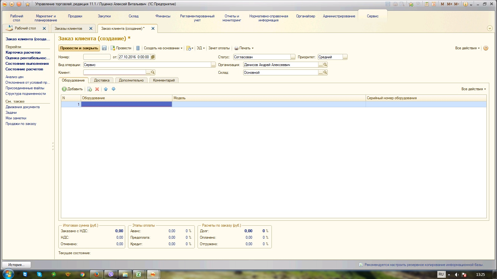 Точную стоимость и сроки смогу озвучить после ознакомления с базами и функционалом вкладки "Сервис". Так же стоимость зависит от необходимости правки печатных форм.