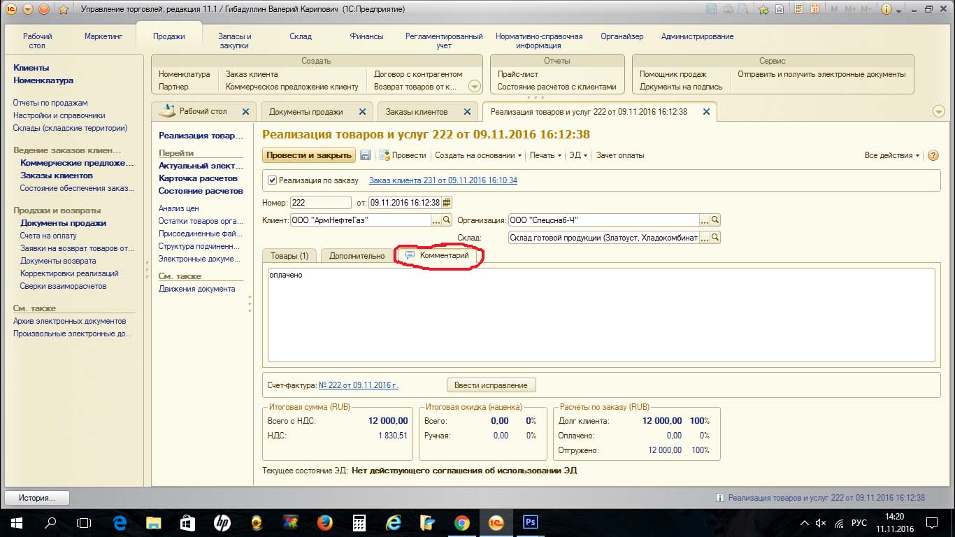 требуется добавить колонку "комментарий" в список "документы продажи". Образец того что нужно на картинках.