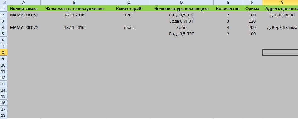 Группировка по номеру заказа.